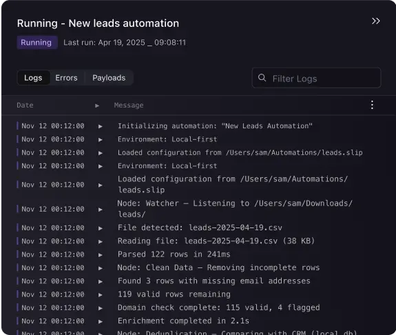 Automatic background compaction merges small files into optimized Parquet for fast queries.